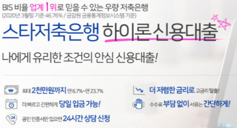 스타저축은행 하이론 대출조건 및 신청방법