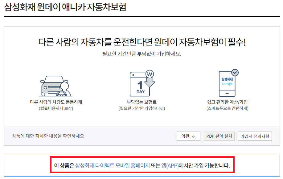 삼성화재 다이렉트 원데이 자동차보험 홈페이지 혹은 모바일 앱을 통해 누구나 간단하게 가입이 가능합니다.