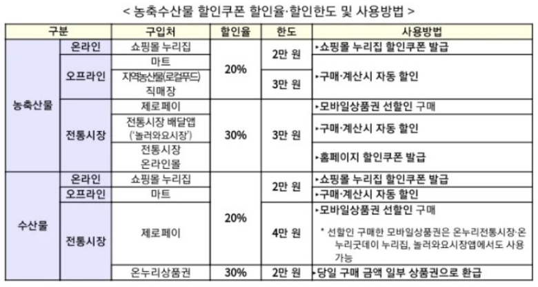 생활지원금 농축산물 30% 할인