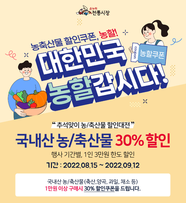 • 온라인 : 8월 15일 ~ 9월 12일까지 농축산물 행사