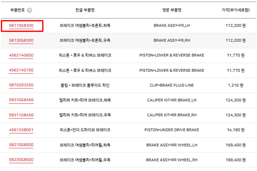 부품번호도 모르고 만사 귀찮다라면 그냥 카센터로 가셔서 지불하고 정비받으시면 되지만, 조금만 노력하시면 합리적인 가격으로 정비를 받을 수 있으니, 활용해보시기 바랍니다.