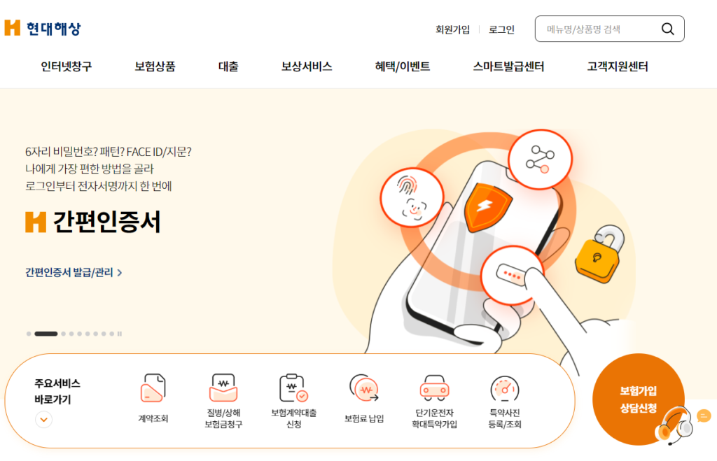 1. 현대해상 홈페이지 접속